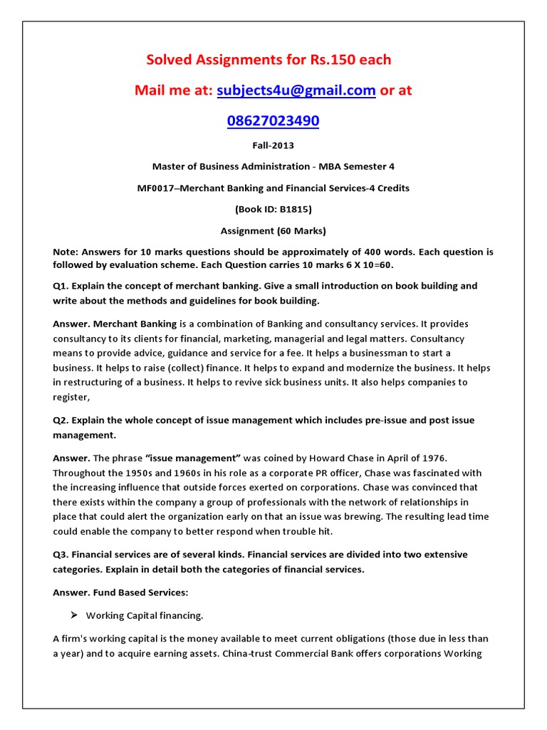 Multiple Choice Questions: 1. Financial services refer to facilities relating to capital market. (ii) Non-banking finance companies are engaged in financial services. Objective Questions and Answers of Financial Management ... Document Viewer